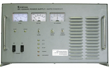 Судовая система питания с зарядным устройством SP–1250ADC предназначена для электропитания судового оборудования ГМССБ морских районов А1, А2, А3 и А4. В качестве основного источника электроэнергии используется бортовая сеть 110В или 220В 50 Гц, в качестве аварийного источника используются аккумуляторные батареи (источник постоянного тока), напряжением 24 В. Система питания имеет встроенное автоматическое зарядное устройство, которое используется для подзарядки подключённых аккумуляторных батарей.