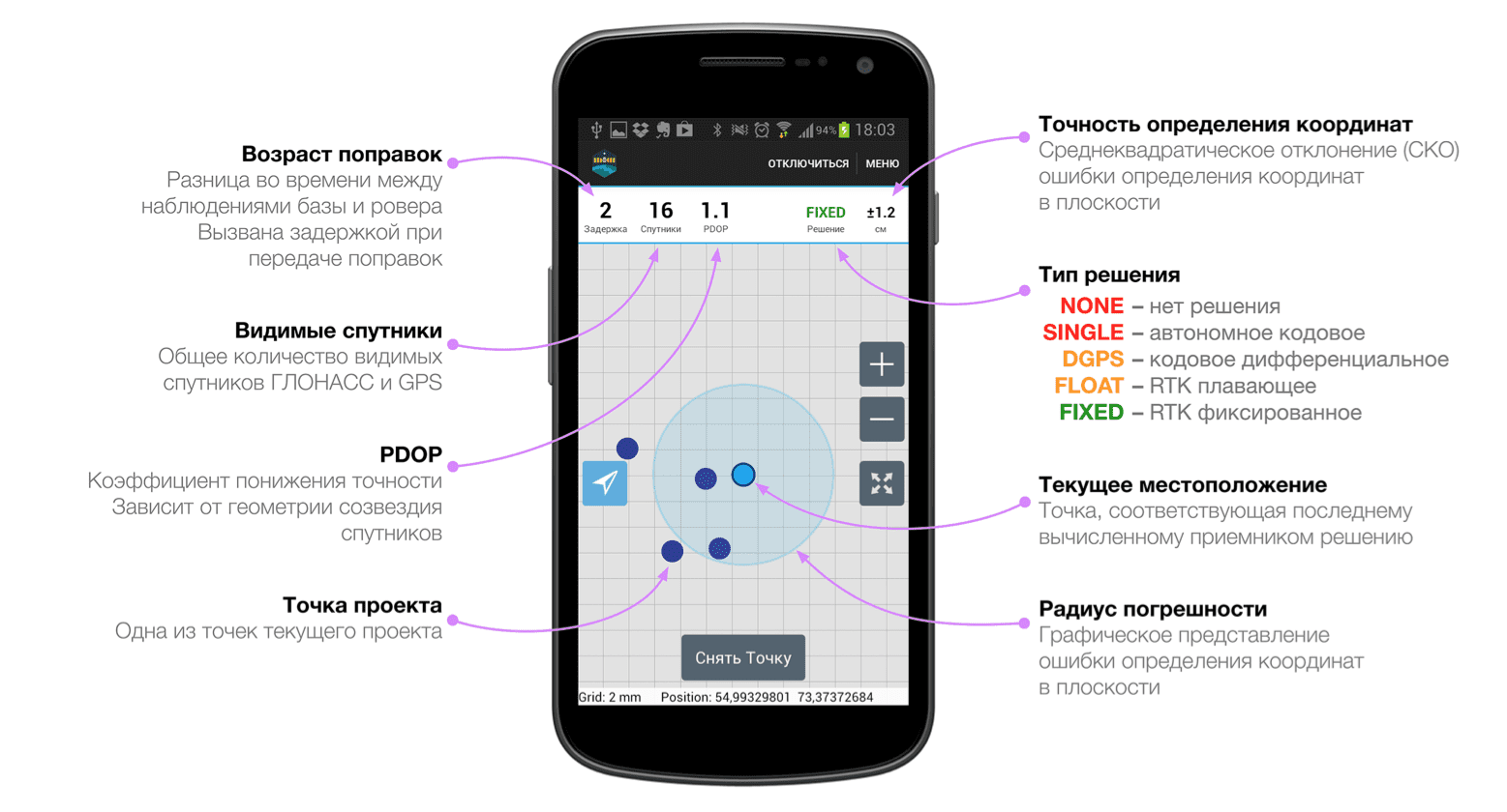 RV — это мобильное приложение для Android-смартфонов, которое позволяет выполнять полевые работы в RTK режиме.