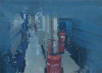 В машинном помещении должно быть два комплекта трапов, один из которых должен иметь защиту от огня в виде ограждения конструкциями типа А-15 или А-0 с орошением, управляемым как изнутри, так и снаружи помещения. Со стороны туннеля гребного вала должна быть установлена легкая стальная дверь, управляемая с обеих сторон.