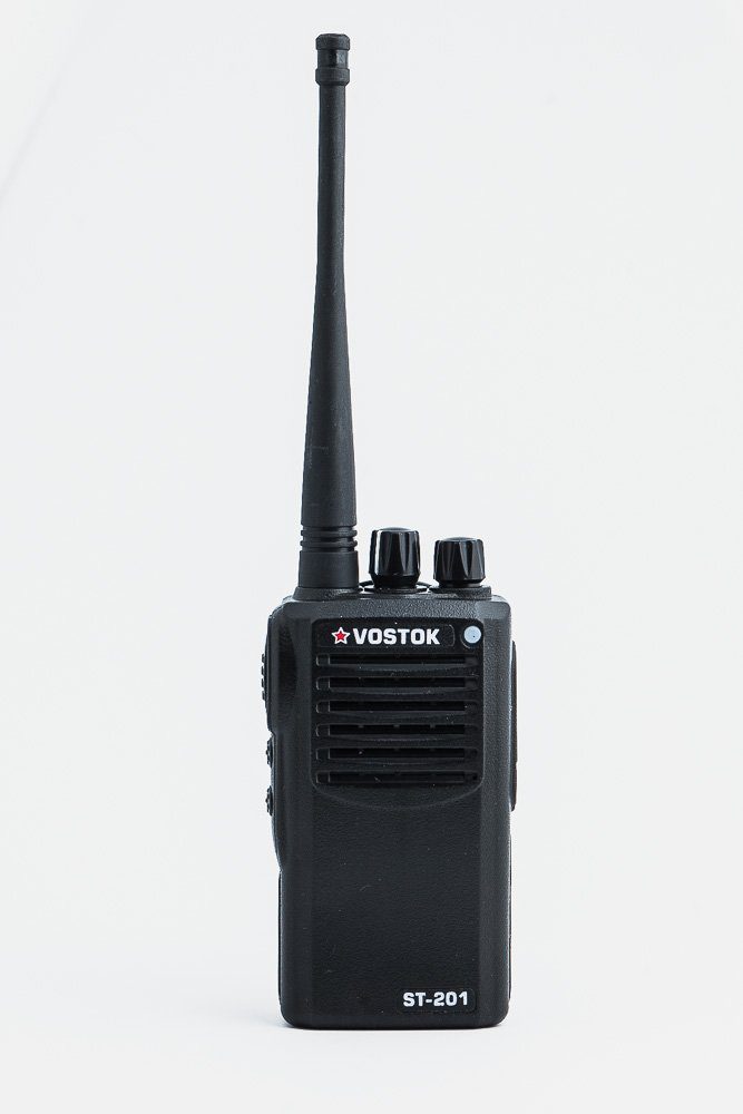 Vostok ST-201 — профессиональная портативная радиостанция LPD / PMR диапазона, частоты 433,07500 – 434,77500 / 446,00625 – 446,09375 МГц, мощность 5 Вт, скремблер, 16 каналов.