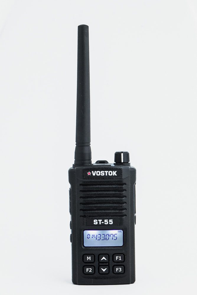 Vostok ST-55 — профессиональная портативная радиостанция LPD / PMR диапазона, частоты 433,07500 – 434,77500 / 446,00625 – 446,09375 МГц, мощность 5 Вт, 199 каналов.