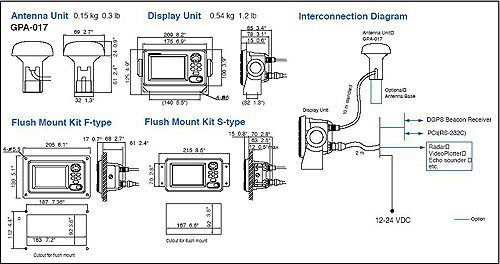 Прибор имеет водонепроницаемый корпус и создан, чтобы противостоять жестким морским условиям. Этот GPS может хранить в памяти до 1 000 точек, в которых когда-либо находилось судно. Возможно создавать и хранить в памяти 50 маршрутов из 30 точек каждый. Все навигационные данные отображаются на 4.5-дюймовом высококонтрастным LCD дисплеем с антибликовым покрытием.